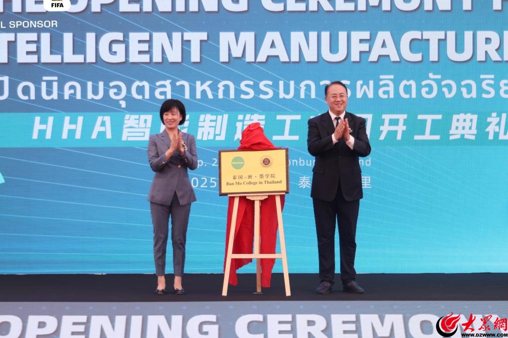 9月23日,代表团赴海信泰国公司(春武里)工厂,在泰国副总理苏查特·宗克林,山东省委常委、青岛市委书记曾赞荣,中国驻泰国大使馆公使衔参赞江伟,泰国工业部副部长约辛,泰国春武里府府尹塔瓦猜,泰国投资促进委员会副秘书长纳鲁查,海信集团董事长贾少谦等的见证下,学院党委书记李群与海信集团副总裁、海信家电集团董事长高玉玲现场揭牌“泰国—班·墨学院(海信)”,标志着学院首个海外“班·墨学院”正式落地。